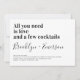 Convide amigos e família para se juntarem a vocês para suas celebrações de casamento com este divertido convite para o casamento. O texto diz "tudo que você precisa é amor e alguns coquetéis"