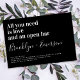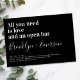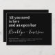Convide amigos e família para se juntarem a vocês para suas celebrações de casamento com este divertido convite para o casamento. O texto diz "tudo o que você precisa é amor e um bar aberto"