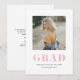 Anuncie sua formatura para familiares e amigos com este cartão de anúncio de formatura personalizável. Ele apresenta uma tipografia em negrito em brilho rosa falso. Personalize este anúncio de formatura com brilho rosa adicionando uma foto, nome, escola e outros detalhes. Este anúncio de formatura com foto moderno está disponível em outro papel cartão.