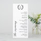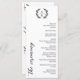 Elegante programa de núpcias 9x4 em um design de tipografia preto e branco com um monograma de coroa de louros e belas fontes. Programa de casamento tipográfico com um monograma verde e lindas fontes. Programa de casamento plano com um monograma elegante e belas fontes e detalhes verdes em preto contra fundo branco.