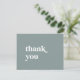 Este cartões de agradecimentos verde moderno da tipografia é perfeito para um casamento simples. O design verde-sábio e branco apresenta uma fonte retrô, mas contemporânea, com um toque único da boêmia rústica. Personalize a parte traseira do cartão com seus nomes e uma mensagem de obrigado. Como alternativa, deixe o vazio da seção modelo da mensagem do obrigado para escrever uma nota personalizada em cada cartão após a sua chegada. Essas cartas podem ser usadas para um casamento, chá de panela ou qualquer evento especial.