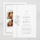 Torne o seu dia de casamento exclusivamente o seu com o nosso moderno minimalista personalizável Guarde o cartão de casamento de Data com linha floral são arte, bela tipografia e múltiplas fotos no verso. Crie um na moda e uma adição memorável ao seu dia especial!