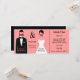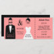 A divertida passagem do chá de casamento Jack e Jill apresenta uma silhueta de um noivo em um smoking preto. Há também uma silhueta de noiva em um vestido branco de casamento. Os rostos da noiva e do noivo estão desaparecidos e, em vez disso, têm os textos Jack e Jill sobre cada um, respectivamente. Há um lugar para adicionar o nome dos noivos em letra rosa em seu smoking e o nome das noivas em letra negra em sua área de vestido de noiva. Há texto personalizável para adicionar a data e a hora. Ao lado direito do design de noiva e noiva é uma linha pontilhada preta para que o convite possa ser usado como estilo de passagem e cortado como o stub pago para entrada no chá de casamento Jack e Jill. Há um texto personalizável na fonte preta na área de stub onde você pode adicionar a taxa de entrada, endereço, hora etc. Esta é uma divertida e única multa de Chá Jack e Jill Festa de casamento!