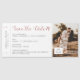 Logótipo de avião cor-de-rosa dourado num cartão de embarque de diversão, guarde a data do cartão magnético para um tema de viagem ou casamento de destino, com a sua fotografia e muito texto personalizado. Os detalhes autênticos do tíquete retrorreflector incluem pequenas setas, código de bar e caixa para uma atribuição de assentos em uma fonte de computador vintage completa a aparência. Os casamentos de destino exigem enviar aos convidados todas as informações de alojamento antes de um casamento local. Se você quiser simplesmente divulgar a palavra enquanto você elabora os planos de viagem e excursão, o design no verso pode ser excluído, basta clicar em 'personalizar mais'. Destinos de Uvas de Papel no Zazzle são especializados em convites para temas de viagem e artigos de papelaria para o casal aventureiro e de luxo que planeja suas núpcias no exterior.