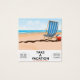Tome uma Férias " É mais rápido por caminho de ferro" poster de férias de praia, estilo Vintage, de uma cadeira de baralho listrada vintage e de uma bola de praia numa praia arenosa perto do oceano.