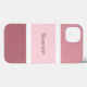 Capa de telefone de linhagens e na moda com um padrão de listras rosa e branca. Vários tons de grandes listras cor-de-rosa mais pequenas listras brancas. Personalizado com seu nome impresso em um texto rosa.