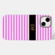 Esta "capas de iphone Monogrammed Pink/White Stripes" apresenta listras rosa e brancas e pode personalizá-la com as suas iniciais. Peça hoje!