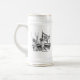 Beer stein with drawing of two sailors from the famous German battleship Bismarck of world war II with the name of the ship written with fraktur letters.