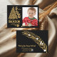 Cartão com fotos do feriado do Natal com uma árvore bonita do feriado de redemoinhos do ouro, de folhas do louro, e de texto da tipografia que lê Tis a estação para ser La alegre do La do La do La do La do La do La do La do Fa! Este cartão com fotos é fácil de personalizar com sua foto e o ano em curso. Este cartão alegre bonito do feriado do Natal da alegria é perfeito para enviar aos amigos e à família. A parte traseira é preta com um sprig verde dourado com bagas brancas e áreas adicionar sua mensagem do feriado assim como seus nomes!