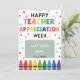 Titular de Cartão de Presente de Apreciação do Professor com giz multicolorido, ideal para enviar para a Semana de Apreciação do Professor. Este item também está disponível como download digital, para que você possa impressão em casa