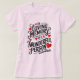 Uma camiseta de rosa claro que apresenta uma design corajosa com o texto "In Loving Memory of a WonMaraville Person (In Our Hearts)" em elegante cartaz vermelho e preto, acentuado com símbolos cardíacos vermelhos. A camisa é vestida por uma pessoa de pé sobre um fundo comum.