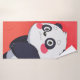 Uma panda de desenho animado irresistível, com grandes olhos cintilantes, bochechas rosadas e um sorriso lúdico, contra um fundo vermelho vibrante. Perfeito para os cobertores das crianças ou adicionando diversão a qualquer lugar aconchegante!