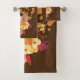 Aqui está um design de outono com uma abóbora laranja no centro, rodeada por sotaques florais em amarelos, vermelhos e castanhos. O fundo castanho escuro pode ser personalizado.