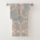 Este conjunto de toalhas cinza é realmente bonito para a decoração shabby chic do seu banheiro. Este conjunto de toalhas apresenta um padrão de flores rosa e amarelo em estilo vintage sobre um fundo cinza. Personalize a toalha de mão com o seu próprio monograma. Este conjunto de toalhas seria um presente atencioso para uma casa nova.