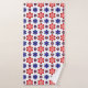 Esta toalha de banho apresenta um lindo padrão floral colorido de margaridas estilizadas em azul, roxo e vermelho contra um fundo branco; perfeita para adicionar um toque de charme retrô ao seu banheiro.
