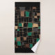 Geométrico, abstrato, preto, turquesa, ouro, castanho, faixas, linhas, xadrez, preto e turquesa