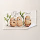 Diversão e batatas marrons bonitas penduradas no jardim. Design de desenho de desenhos animados. Desenhando por Irony Design Donna Léger. Todos os direitos reservados.