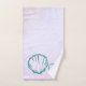 Chá de fraldas com conchas lacrimogêneas e um fundo de lavanda roxo