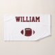 Toalha de mão de suor com tema desportivo feita em branco com gráficos marrons de futebol. O grande texto marrom em negrito está pronto para personalizar para ler o que você quer.