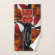 Esta toalha espiritual da equipe para jogadores de basquete apresenta cestos de tamanho variado com cores da equipe vermelha e preta que se viraram de qualquer maneira, sobrepondo a imagem de fundo de basketball abstratamente sobredimensionado, e um número de camisa proeminente em vermelho sobre uma faixa preta de comprimento do cheio, na qual você também pode personalizar o nome do atleta, o nome da equipe e o nome da mascote em branco - por katz - por katz_d_d_zynes