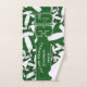 Esta toalha atlética para jogadores de vôlei tem várias dimensões, verde e volleybolas brancas se viraram em todos os sentidos, em um fundo branco e um número de jersey em verde, sobre uma faixa verde em preto, comprimento do cheio, na qual você também pode personalizar o nome do atleta, o nome da equipe e o nome do mascote - por katz_d_zynes