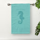 Adicione seu nome a esta toalha aqua com um cavalo marinho turquesa. Adequado para todas as sereias