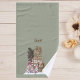 Três Gnomos Vintage Mão Toalha. Este adorável design tem três gnomos bonitos descansando depois de um longo dia pegando pacotes em sua carroça. Design é vintage com pinks, blues e golds. Edite facilmente a saudação com o nome.