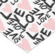 Uma tomada moderna do amor, com uma fonte preta rabiscada e corações cor-de-rosa pálidos desenhados à mão, lembrando a famosa escultura "LOVE" da década de 1970.