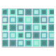 Um simples meio século moderno inspira um padrão simples de abstrato com quadrados em filas e colunas. Uma ideia de presente de excelente para qualquer um que ama arte minimalista do século 20. Esta tem tons de verde azul, como turquesa, aquamarine, lacre e verde oceânico.