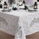 Esta mesa de 60" x 104" púrpura pastel "Spooky Cute" Bebê Halloween apresenta ilustrações deliciosas desenhadas à mão em tinta preta por Nathalie Portet, mostrando adoráveis morcegos bebês voando ao longo de todos os 4 lados entre estrelas e luas contra um fundo roxo suave e pastel.