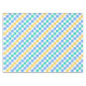 A colorful checkered pattern with alternating blue, green, and yellow squares on a white background. The design is vibrant and geometric, creating a playful tone.