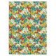 Um padrão vibrante mostra numerosas borboletas em várias cores, em meio a flores e vinhas, criando um design alegre e vivo.