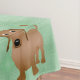 Um belo estilo de desenho vermelho dachshund com uma expressão amigável se coloca em um fundo verde com uma pata azul centrada entre quatro cópias da imagem do cachorro. O fundo está espalhado com mais pegadas e ossos de brinquedo. Este padrão é agrupado para que ele possa facilmente ser transferido para outros tipos de produto.