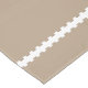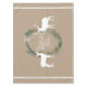 O tablecloth do feriado do Natal no tan com guarnição impressa branco do estilo da cremalheira do rick em dois lados, cones de um pinho e grinalda verde do ramo, mostra em silhueta o fanfarrão e a gama branca dos cervos, e o texto extravagante do branco que lê a época a mais maravilhosa do ano!