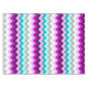 Uma toalha de mesa de 52" x 70" com um design de padrão bonito e colorido de chevrons em ameixa roxa, lilac, branco, minúsculo, turquesa e cinza.