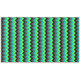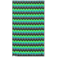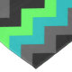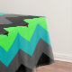Uma mesa de 60" x 104" com um elegante design de padrão de chevrons multicoloridos em preto, cinza, verde e turquesa.