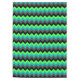 Uma mesa de 60" x 84" com um elegante design de padrão de chevrons multicoloridos em preto, cinza, verde e turquesa.