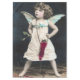 Um cartão postal vintage do dominio público, com uma criança vestida de Cupido e com expressão irritada. Seria um namorados bonito.