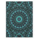 Bring vibrant, calming energy into your home with this eye-catching tablecloth. The design features an intricate mandala pattern with a mesmerizing radial symmetry in shades of turquoise and teal against a dark, nearly black background. The mandala design is made up of delicate floral motifs and flowing lines that radiate outward like petals, creating a sense of depth and motion.