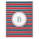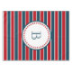 Design de temas náuticos com decoração em forma de monograma, em forma redonda, com estrelas sobre fundo listrado a azul, vermelho e branco