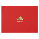 Ilustração de desenho animado de pizza fatia. Cor de fundo personalizada. Texto personalizado.