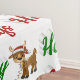 Tablecloth com feriados felizes em 3D em letras verdes e vermelhas e uma rena. Tablecloth disponível em vários tamanhos.