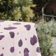 Uma toalha de mesa com um padrão de figo numa rosa claro e bolinhas roxas: um presente adorável para uma pessoa que acabou de se mudar ou para a sua decoração em casa!