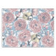 Flores de pénia desenhada à mão e pássaros-tetas em cor rosa e azul pastel. Padrão de vetor sem costura feito no Illustrator.