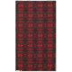 Toalha De Mesa Formas em vermelho 'flutuando' sobre fundo preto.