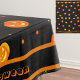 Engraçado e colorido guião Feliz de Halloween, abóboras laranja, assustador e assustador jack-o-lanterno com bolinhas sem costura e linhas laranja sobre fundo preto. Um presente divertido para o Dia das Bruxas Tablecloth para sua família e amigos que amam o padrão das abóboras do Dia das Bruxas. Você pode alterar o texto ou remover clicando no botão personalizar.