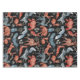 Illustrated woodland animals in red and blue, including foxes, bears, owls, and deer, are adorned with intricate patterns on a black background.