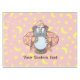 Velha feiticeiro com capa rosa e bola mágica de cristal. Use a foto facial para personalizar. Texto personalizado.