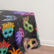 Mardi Gras Tablecloth com uma máscara de penas vermelha e roxa colorida, verde, rosa, cor-de-rosa, e estrelas azuis.