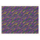Mardi Gras Tablecloth com fitas verdes, ouros e roxas coloridas.
